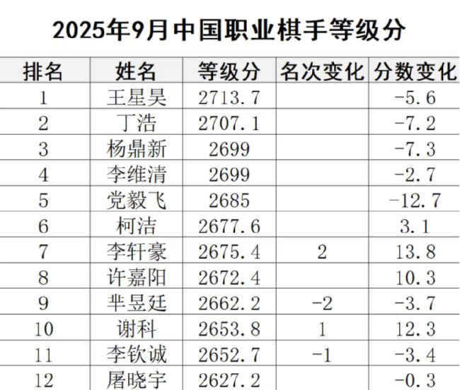 中国棋手在本届比赛中占据半壁山河,王星昊算作现时中国围棋品级分第一东谈主,无疑是夺冠热点之一。这位21岁的新科寰宇冠军在2025年4月举行的北海新绎杯寰宇围棋公开赛决赛中打败李钦诚,首获寰宇冠军。他时代全面,棋风灵动,上风在于其狠恶的蹙迫矛头和深厚的算路。在10月12日,中国围棋协会发布的中国办事品级分排行上,以2713.7分稳居榜首。